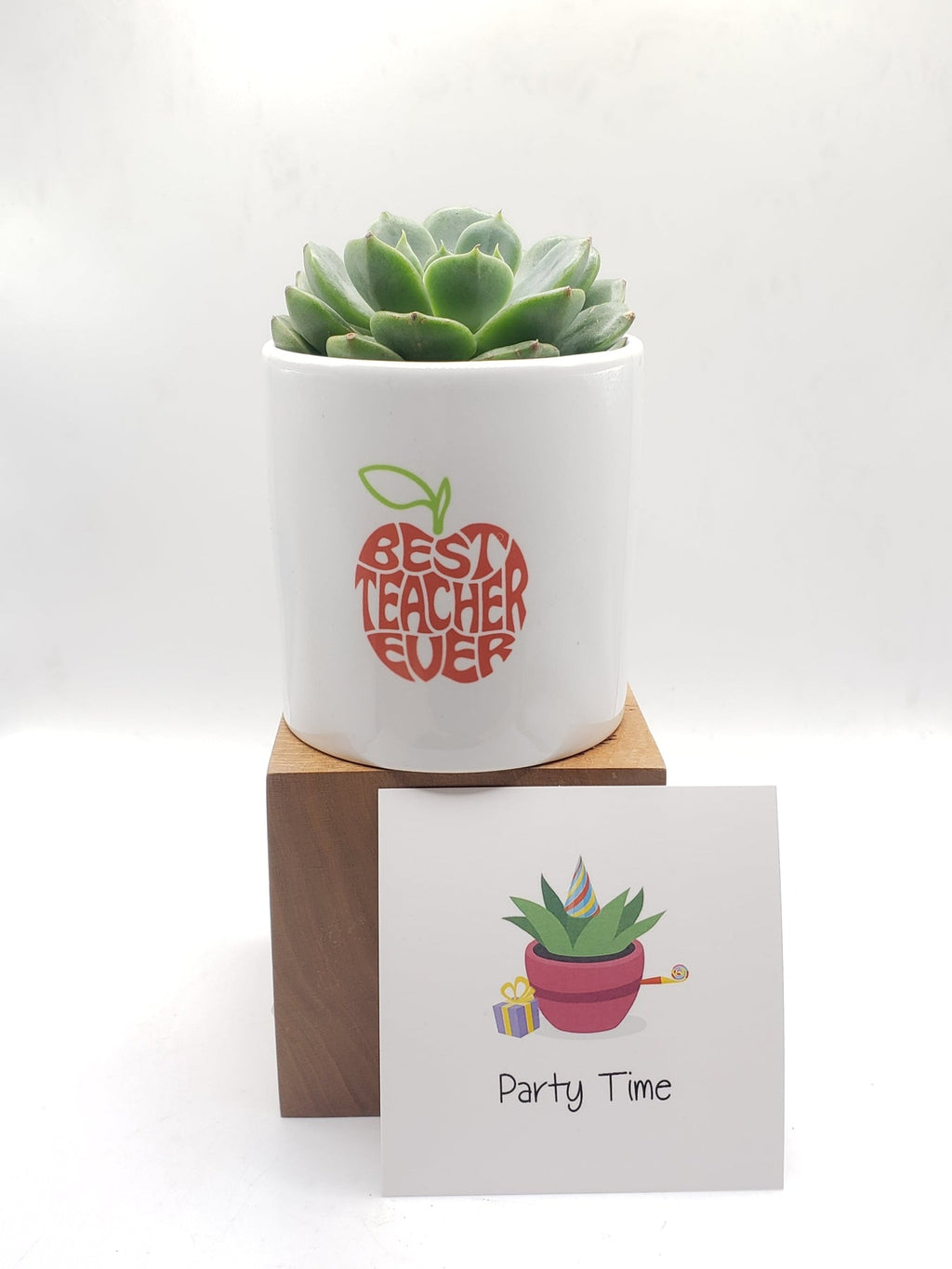 (1) Ceramic Pot with "Best Teacher Ever" logo in perm ink