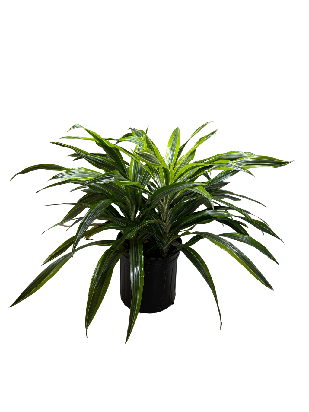 • Description: A vibrant tropical plant with long, arching leaves striped in bright lime green, yellow, and deep green. Its bold variegation and upright growth make it a popular choice for adding color to indoor spaces.