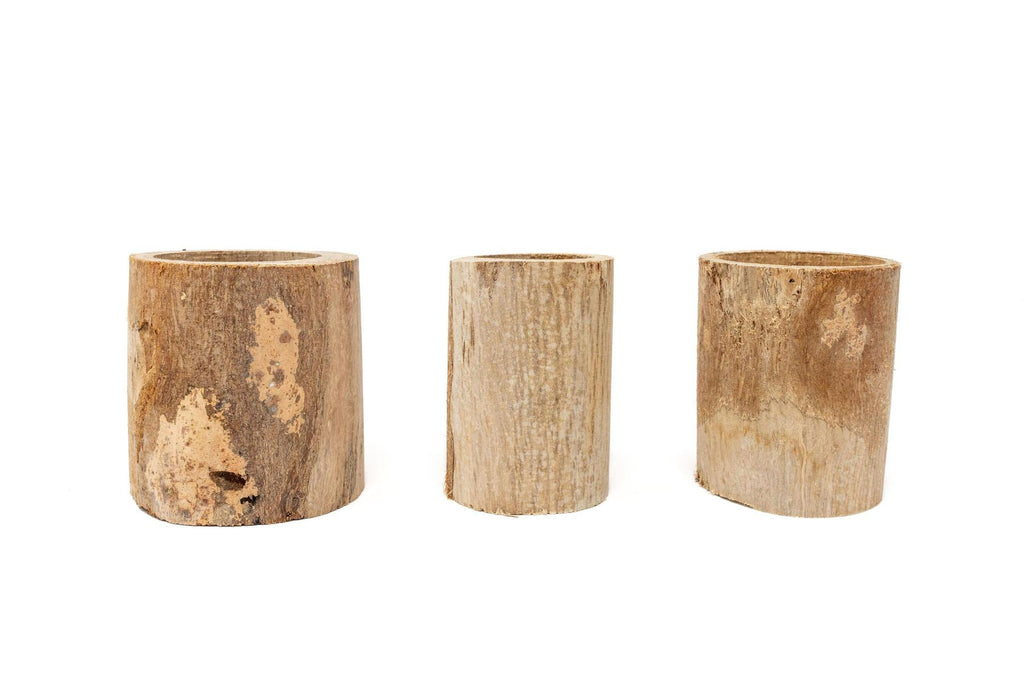 Our hand-carved driftwood containers are made from sun-bleached wood stumps and are a beautiful container for many of our medium to large sized air plants. There are some cracks and imperfections in the wood as every piece is unique.