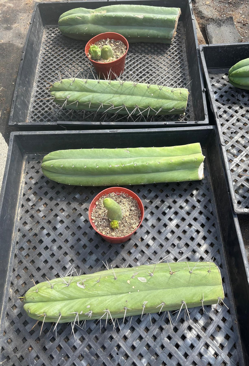 Trichocereus beginning collector starter combo, three different clones grown here at the Succulent Source Nursery, a Pachanoi Jiimz Juuls, and a Bridgesii Jiimz, both of which will be cuttings, a trich seedling 2-4”, and a TBM(Tricho. Bridgesii Monstrose short form) potted in a 40 container. The cuttings will be approx. 10-12". All three will come with aluminum ID tags and some freebies! **pics are examples of the three types you’ll be receiving, Good luck!