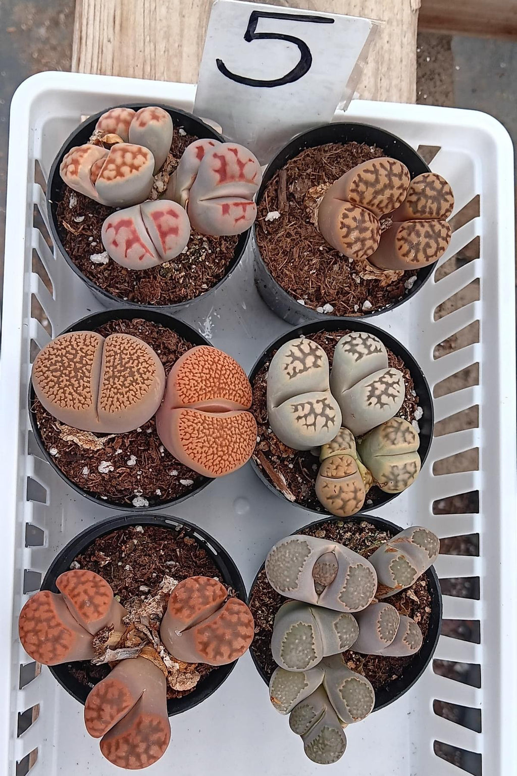 There are well over 300 types of Lithops. Each are named with the Cole system ( after the man who found the while exploring Africa). They range in texture, size, color,
