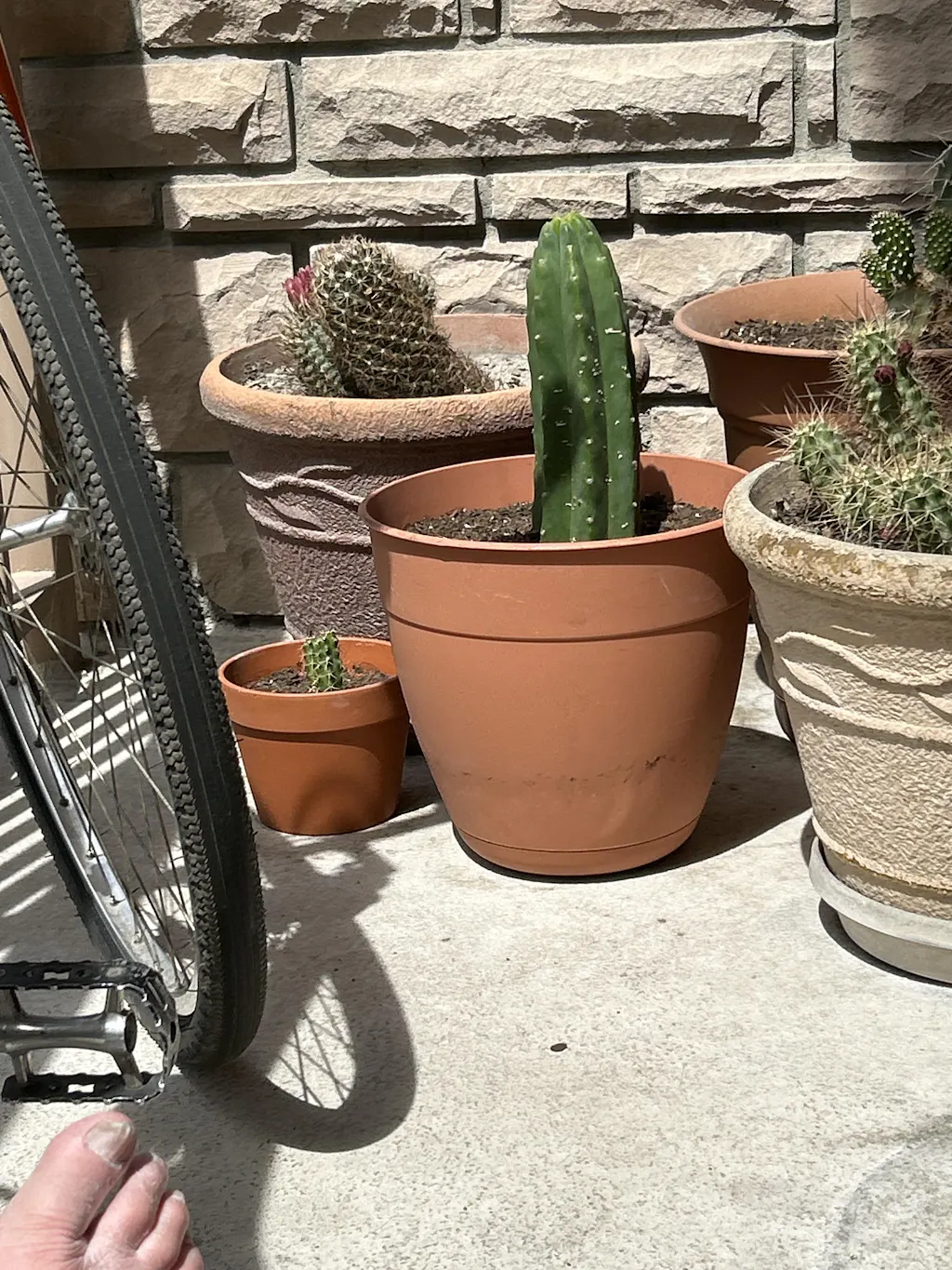 This particular cactus is beautiful, healthy and I believe it's happy- although it's going down to 35° tonight so they're coming back inside for the first time since they went out about a wk ago.